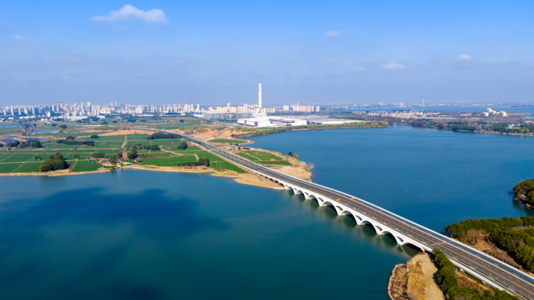 浦港路东延项目作为示范区交通建设的标志性工程,西起吴江思古甸港,东接青浦沪青平公路,全长4.53公里,其中雪落漾大桥全长480米、主桥跨径280米,为示范区内跨度最大的跨省桥梁。项目建成后,将有效完善水乡客厅骨干路网体系,促进区域互联互通,青浦金泽至吴江汾湖车程仅需5分钟,将给周边群众美好生活出行提供便利,为示范区产业升级提供有力支持。