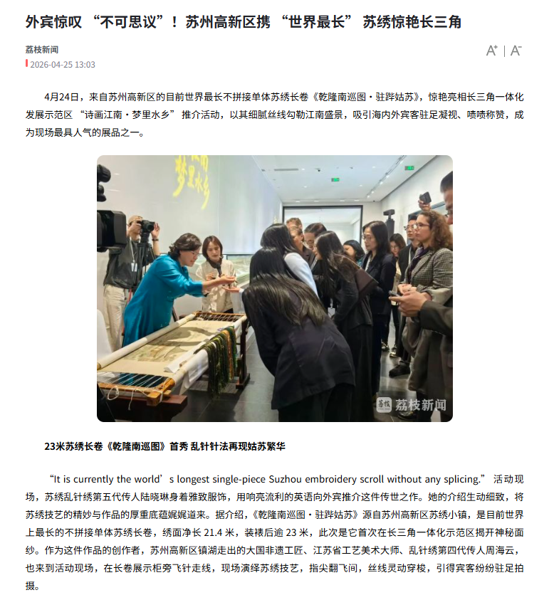 精巧的苏绣、灵动的剪纸、秀美的水印版画,还有独具风味的各色美食,二十多项非遗体验,让现场的外国友人感受到了江南水乡的风土人情和民俗魅力。